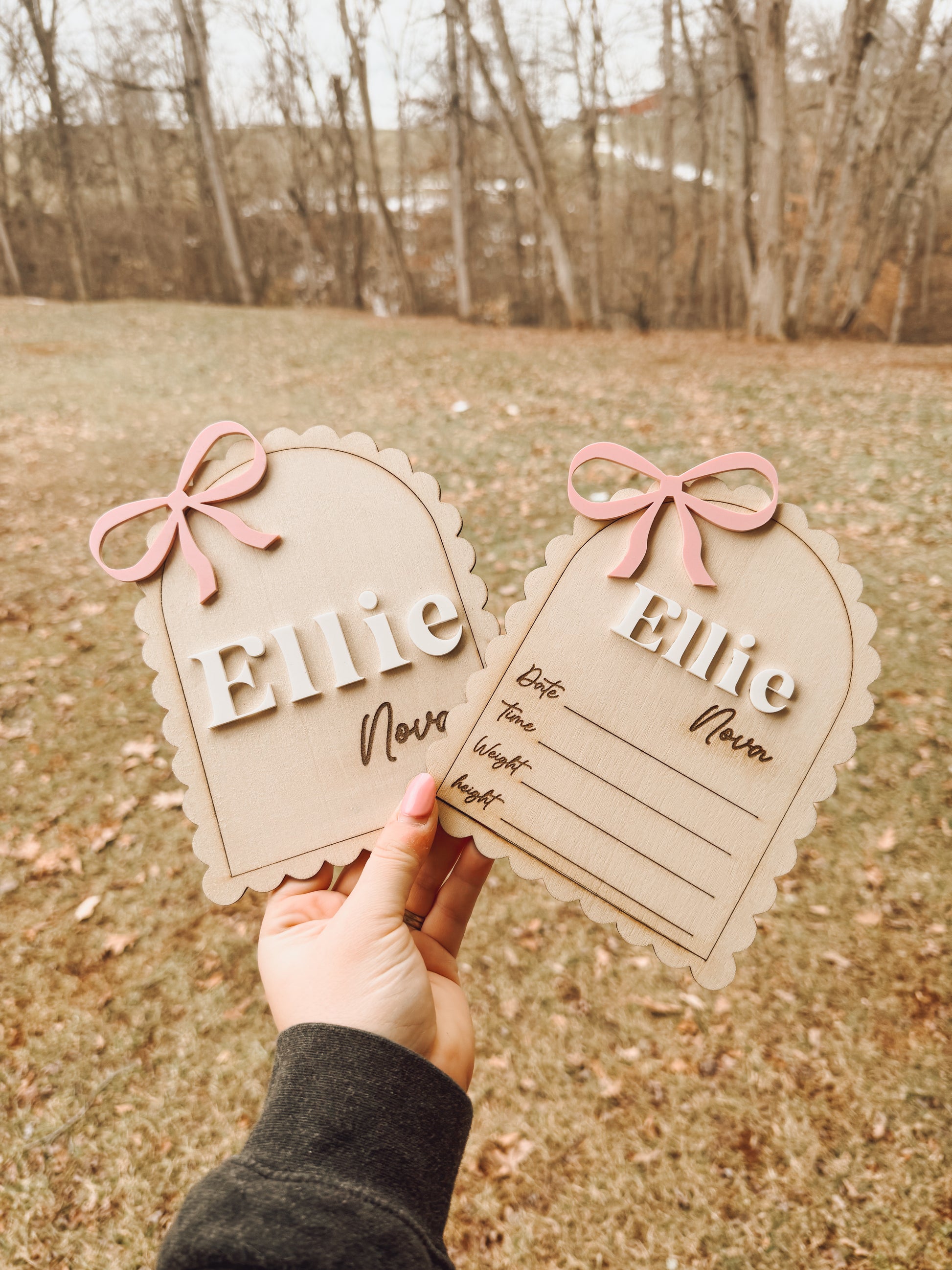 Welcome your little one with a beautifully crafted personalized baby name sign β perfect for birth announcements, nurseries, and keepsake boxes! Choose from three adorable designs or get the complete set for a timeless collection.