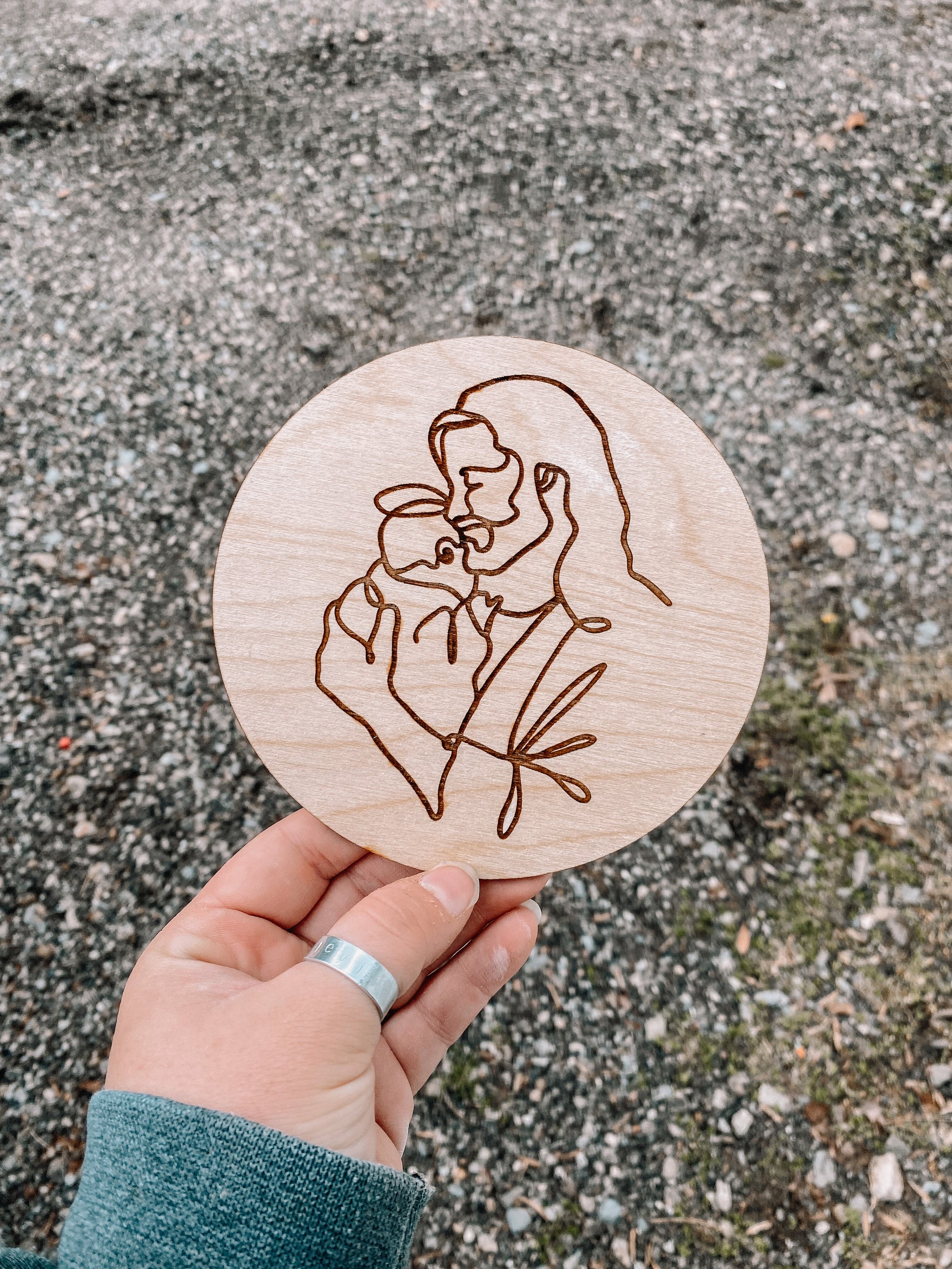 Our miscarriage round is a 5 inch round with the photo engraved. Perfect gift for anyone who has suffered a miscarriage.